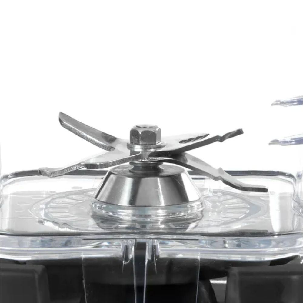 Su jarra de 2 litros hecha de Tritán es ligera pero resistente, no se quiebra fácil y, lo mejor, es libre de BPA, así que puedes preparar jugos, batidos o cremas con total confianza. Además, trae cuchillas de acero inoxidable con 6 aspas, que cortan y mezclan de manera uniforme para que nada se quede a medias.