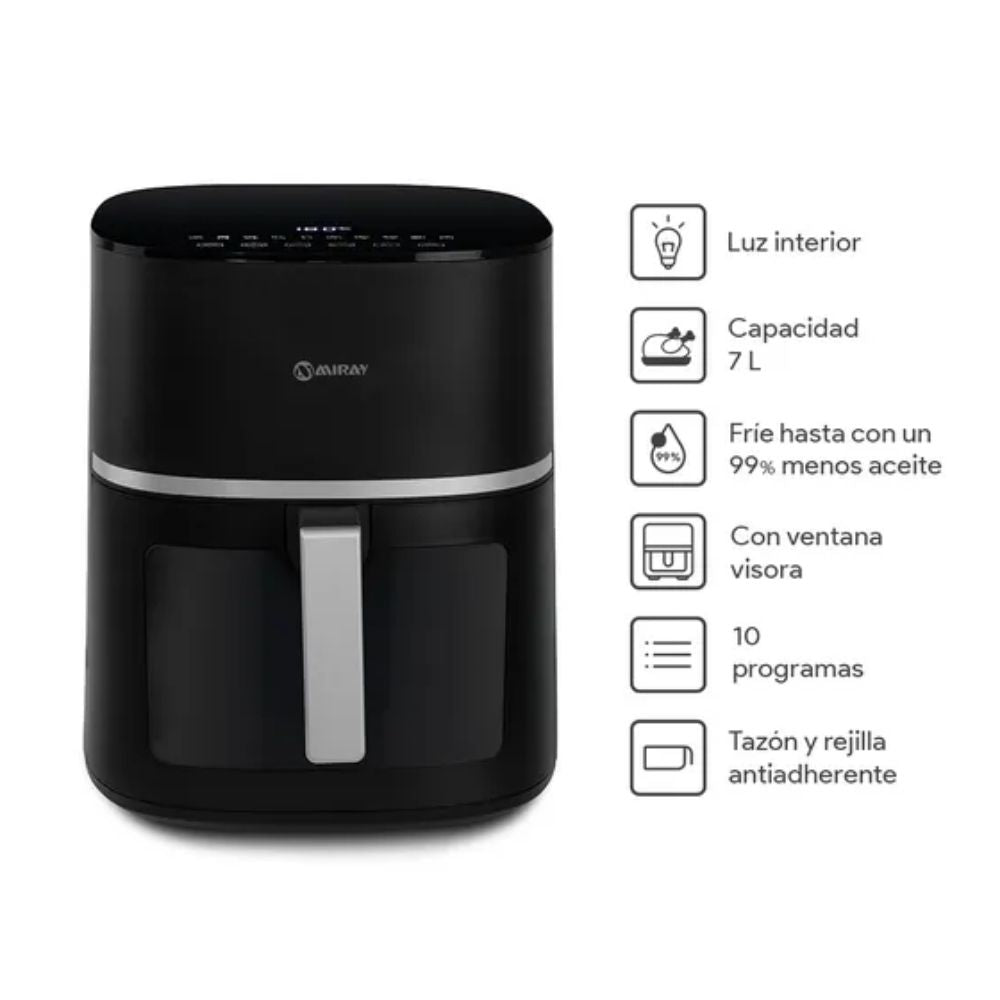 - Capacidad 7 L: ideal para pollos enteros, papas fritas, verduras y más.